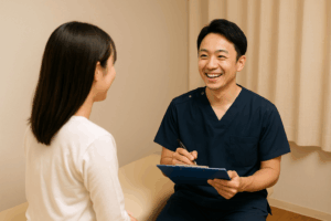 ヒアリングをもとに、姿勢分析アプリやハイボルト機器を使用し、筋肉や関節の状態を丁寧に検査します。痛みの変化は毎回10段階で確認し、専門用語を使わずわかりやすくご説明。あわせて、治療の頻度や期間も明確にご案内いたします。