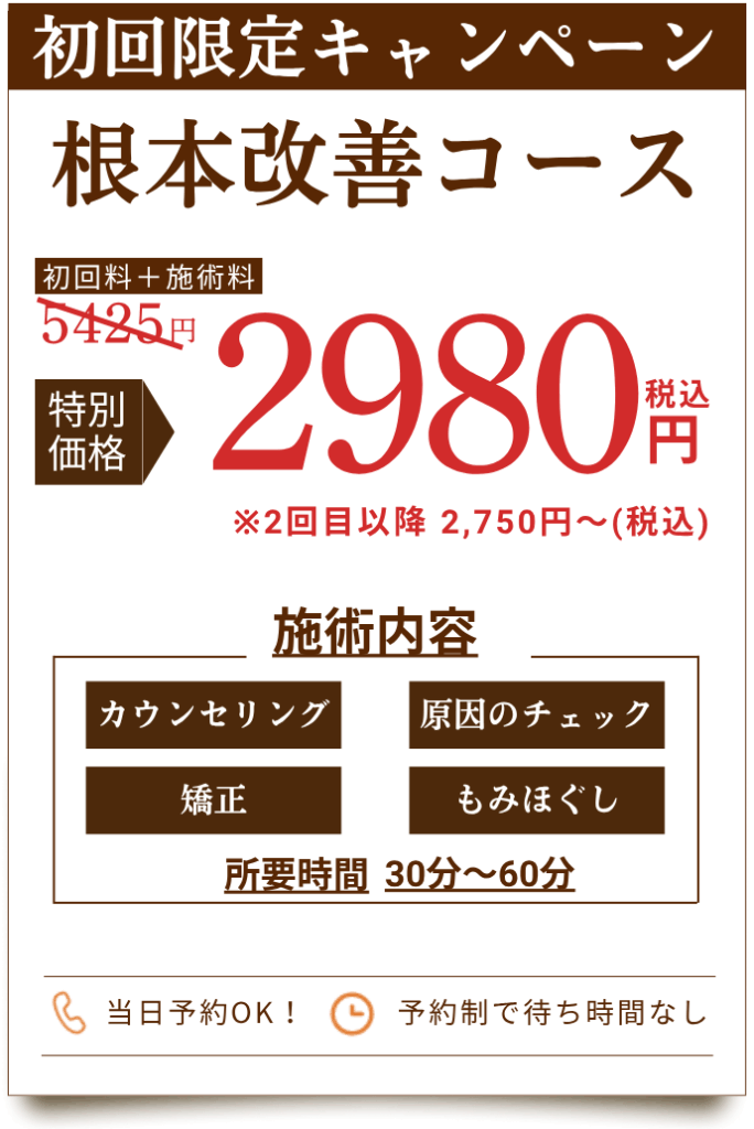 ☑ マッサージや整骨院に通ってもすぐにもとに戻ってしまう