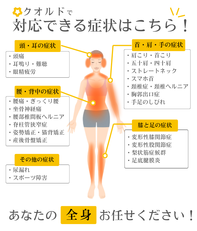 国家資格を持つスタッフが、50万件超の症例実績と最新機器を活かして、通常の手技では届きにくい筋肉や神経にもアプローチ。医学的に効果が認められた機器を用いることで、身体への負担を抑えつつ、根本改善を目指します。