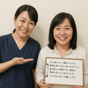 「いつもていねいに施術していただき、腰痛もなくなり、体調も姿勢も良くなりました。」